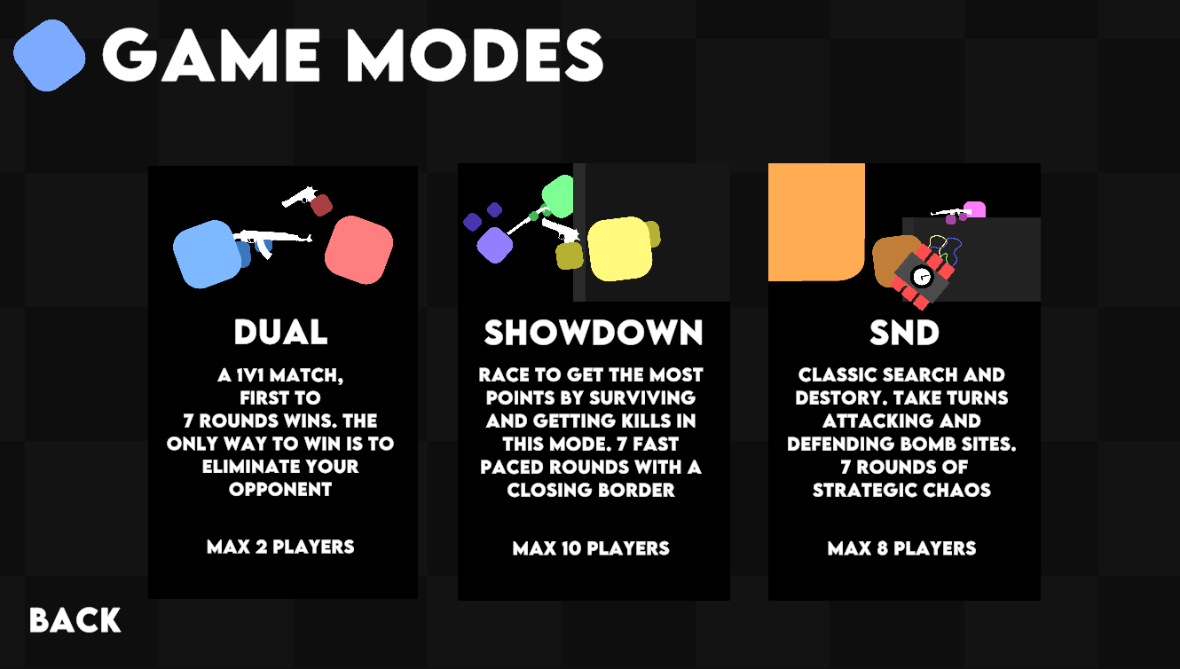 A 1v1 showdown with competitivly balanced maps that ensure the only determining factor in each of the first to seven rounds are you and your oppenents skills.